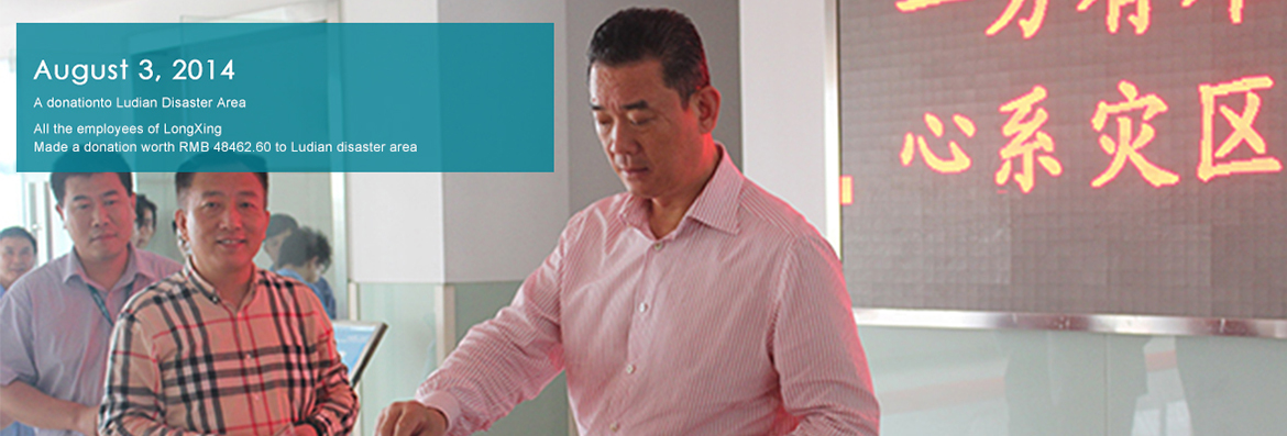 A 6.5 degree earthquake occurred on 3 August, 2014 in Ludian, Zhaotong, Yunnan Provence. LongXing called on all employees to make a donation worth RMB 48462.60.