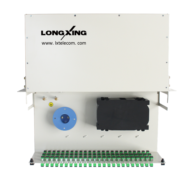 This rack mount fiber patch panel is designed to fit on a standard 19”, 21'' and 23''